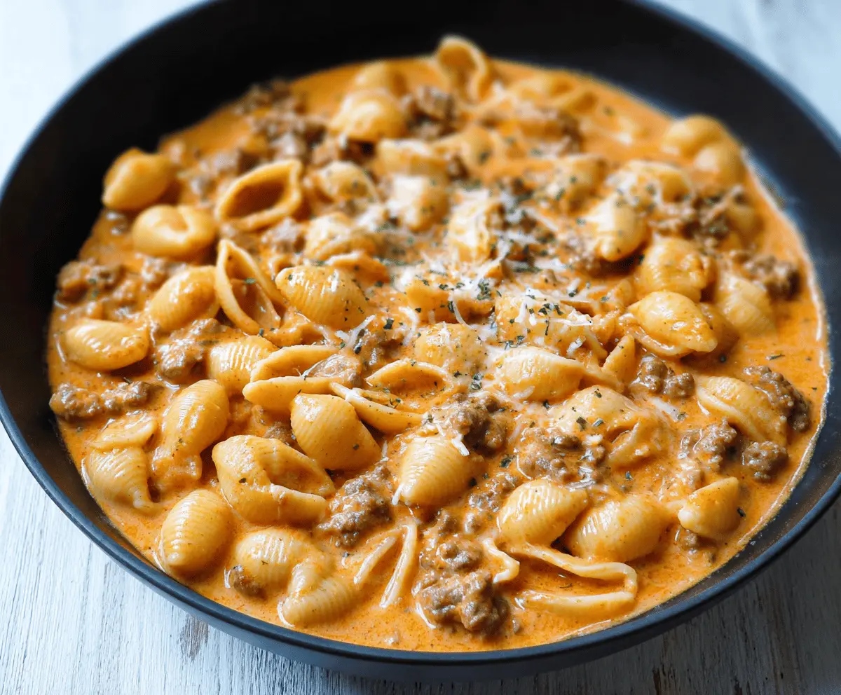 This creamy beef and shells dish is warm and comforting. With tender pasta shells and flavorful ground beef in a rich cheese sauce, it’s sure to please everyone at the table!