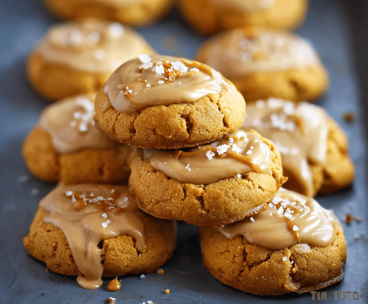 Finally, drizzle salted caramel sauce over each frosted cookie and sprinkle with flaky sea salt. This little touch makes all the difference!