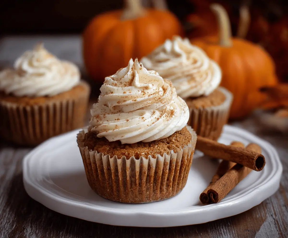Sprinkle a bit of ground cinnamon on top of the frosted cupcakes for that perfect pumpkin spice finish.