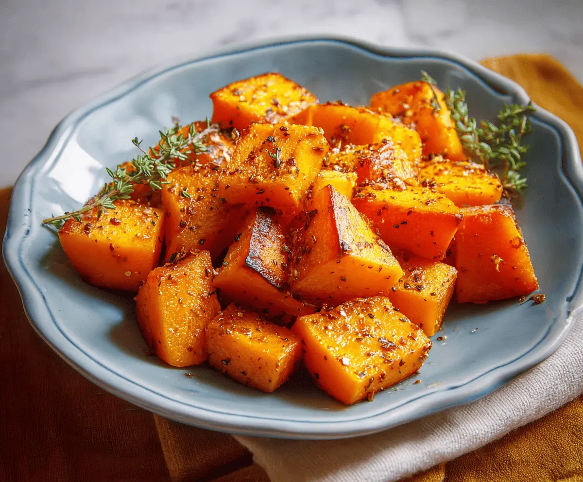 It’s super easy to make—just chop it up, toss it with some oil, and bake. I love serving it with a sprinkle of cinnamon for that warm touch. Perfect for cozy meals! 🎃