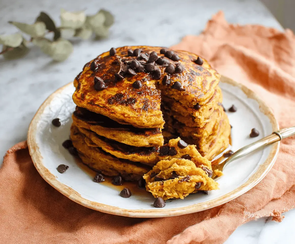 Get ready for a tasty breakfast treat with these spiced pumpkin chocolate chip pancakes! Fluffy and flavorful, they combine pumpkin goodness with sweet chocolate bits for a fun twist.