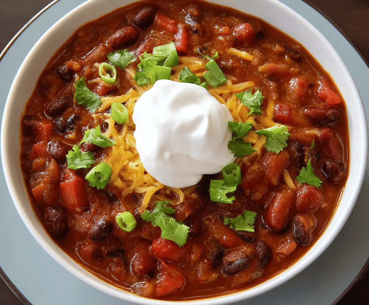 This hearty vegetarian chili is packed with colorful beans, sweet peppers, and tasty spices. It’s warm and comforting, perfect for cozy nights or friendly gatherings!